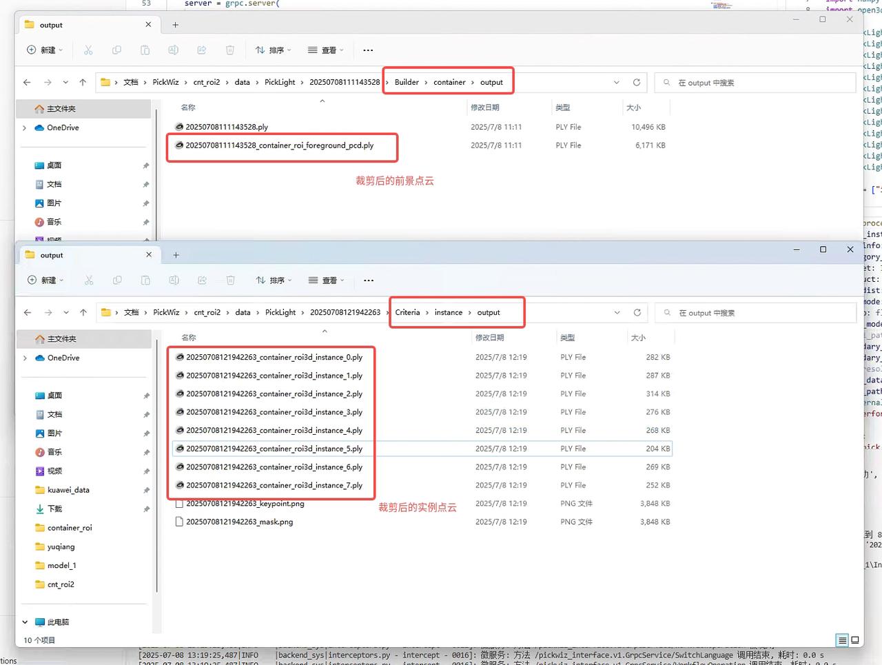 示例:保留料框ROI区域内点云(工件点云处理)用于剔除一些反光的实例。