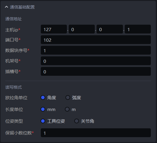 | 保留小数位数 | 机器人指令中的浮点数据保留几位小数,只支持数字,默认为1 | |