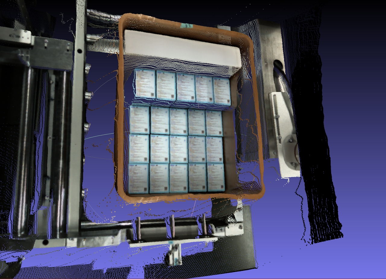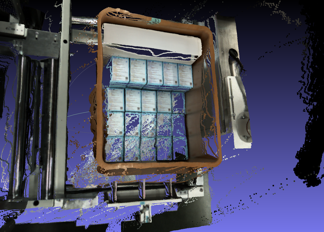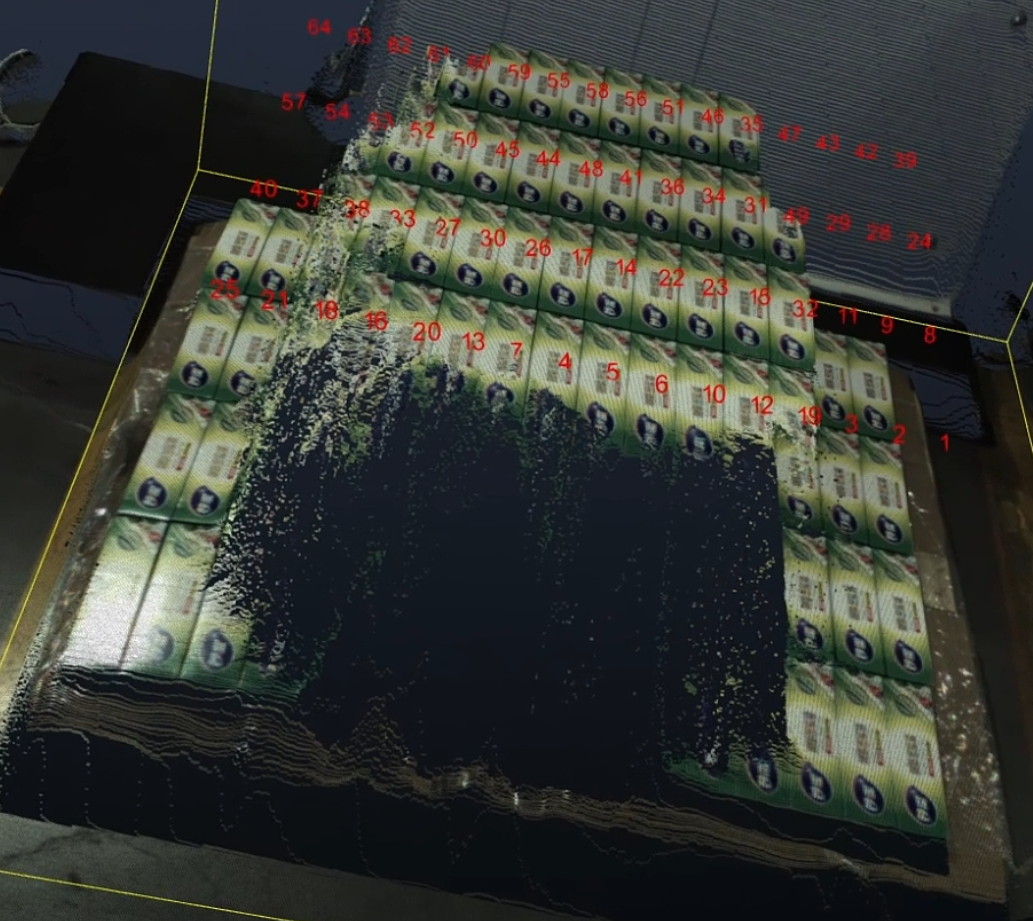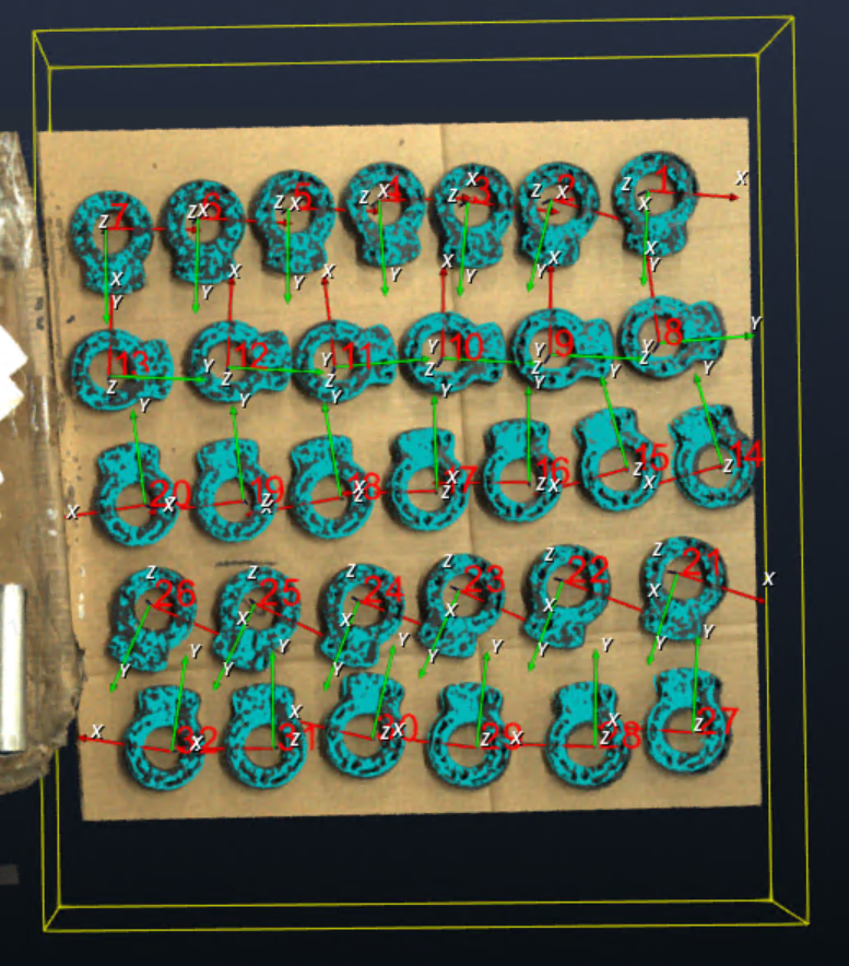 - 针对双目无序场景,一键联通支持多料框数据渲染,优化料框成像效果,降低无序带料框场景的料框点云塌陷率;