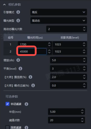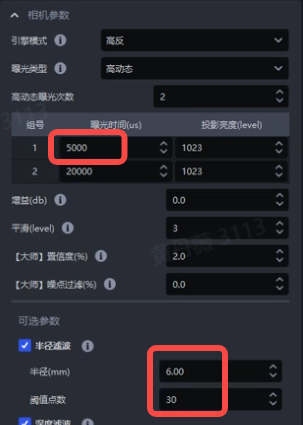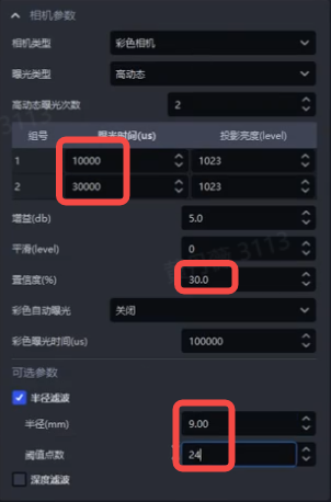 - 参考项目卡现场相机参数调节经验,更新相机参数模板默认数值,使相机参数模板更接近重点项目现场工况;