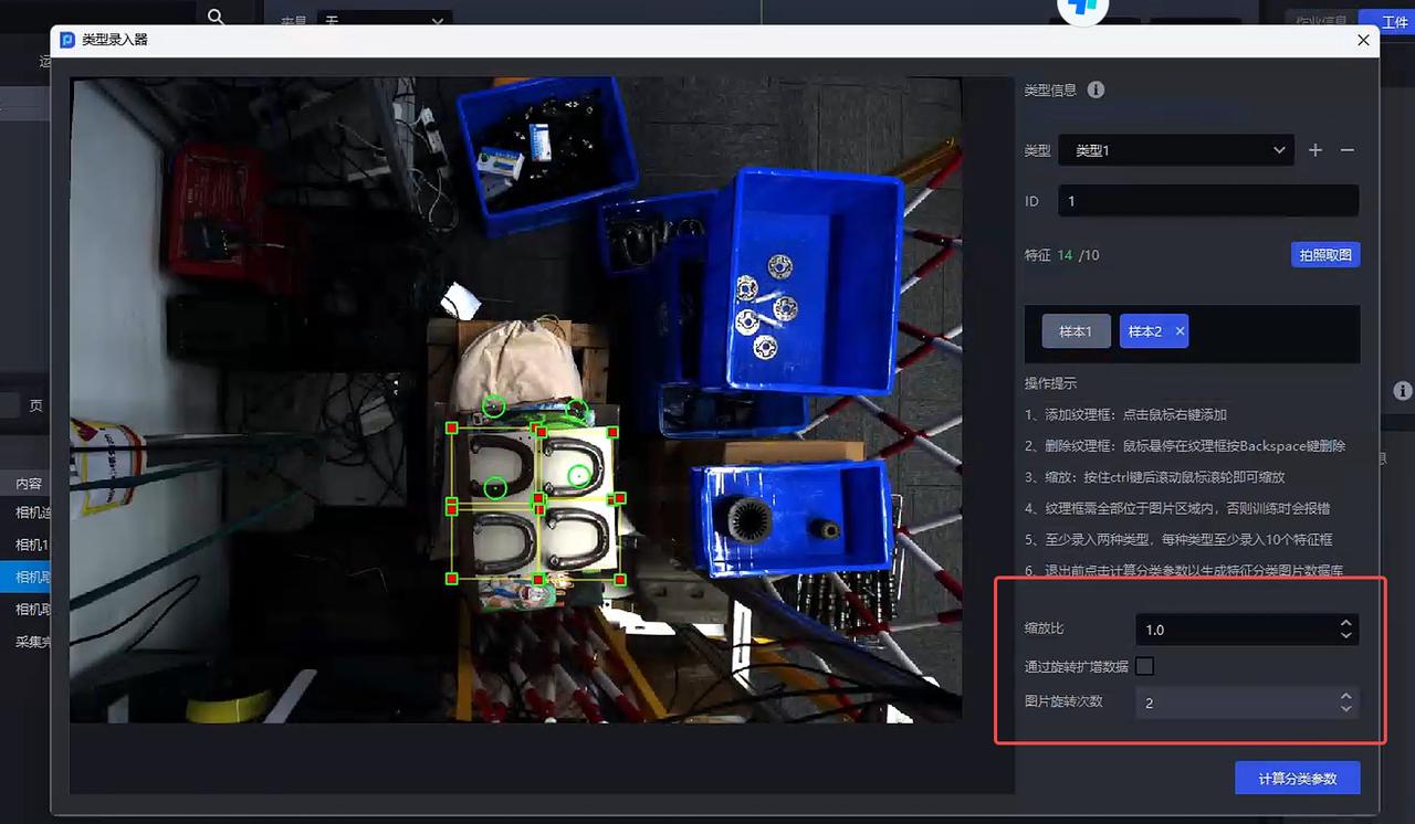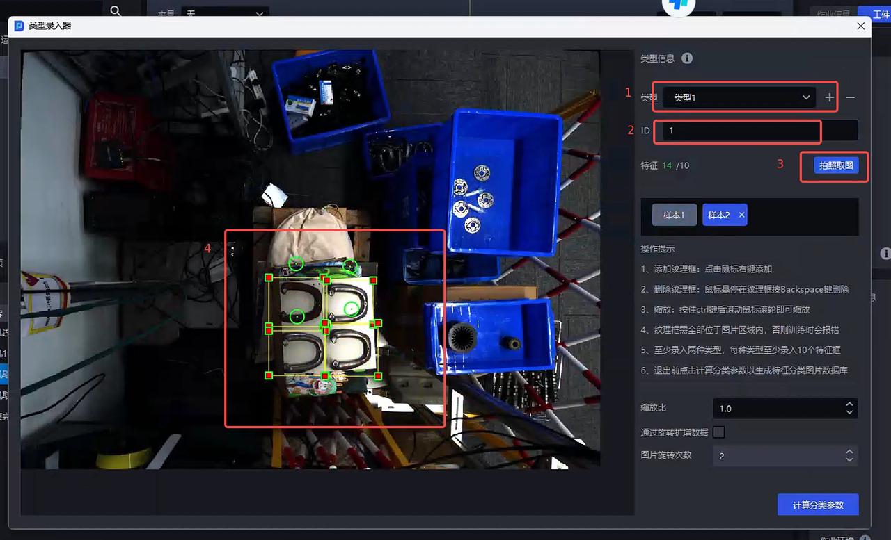 在图片中框选对应图片区域,每种类型至少录入10个样本