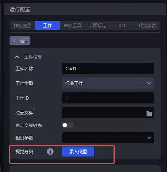 在工件界面-视觉分类点击录入类型,打开类型录入器
