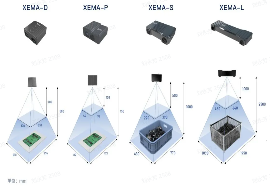 严禁超距使用,使用距离:XEMA-P:100-150mm;XEMA-DCW:0.3-0.5m;XEMA-SCW:0.5-1m;XEMA-LCW:1-2.5m;SPARROW:0.3-0.5m;FINCH:1.5-3.5m:如有特殊定制需提前跟相机组沟通需求