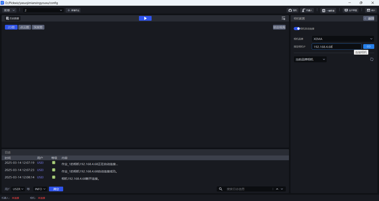 作业信息界面为当前作业选择相机,选择相机后,状态栏的相机连接状态变为"已连接",如下图所示。