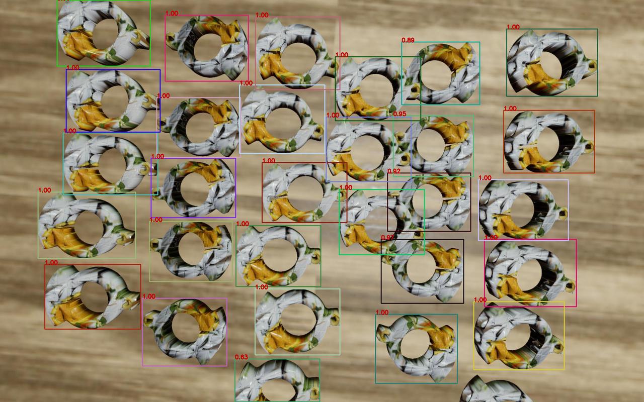 通用/面型工件有序上下料场景中,若工件的来料形式是行列有序但工件姿态不一致,可开启混合无序场景数据,一键联通会同时生成有序场景(行列有序)和无序场景下(姿态不一致)的合成数据用于训练,这样训练出来的视觉模型对工件姿态不一致的场景识别效果更好、鲁棒性更高。