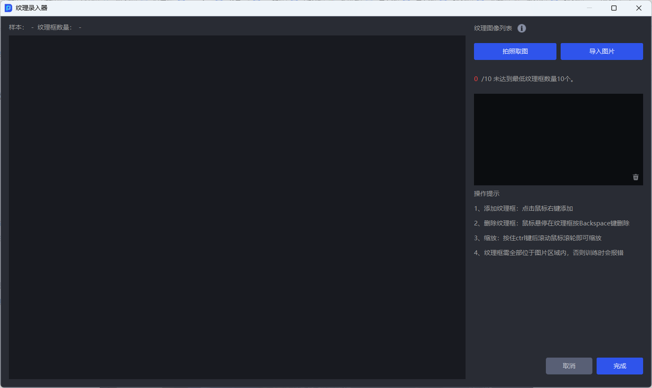 - 获取工件纹理图片后,点击鼠标右键可在图片上添加纹理框;按住