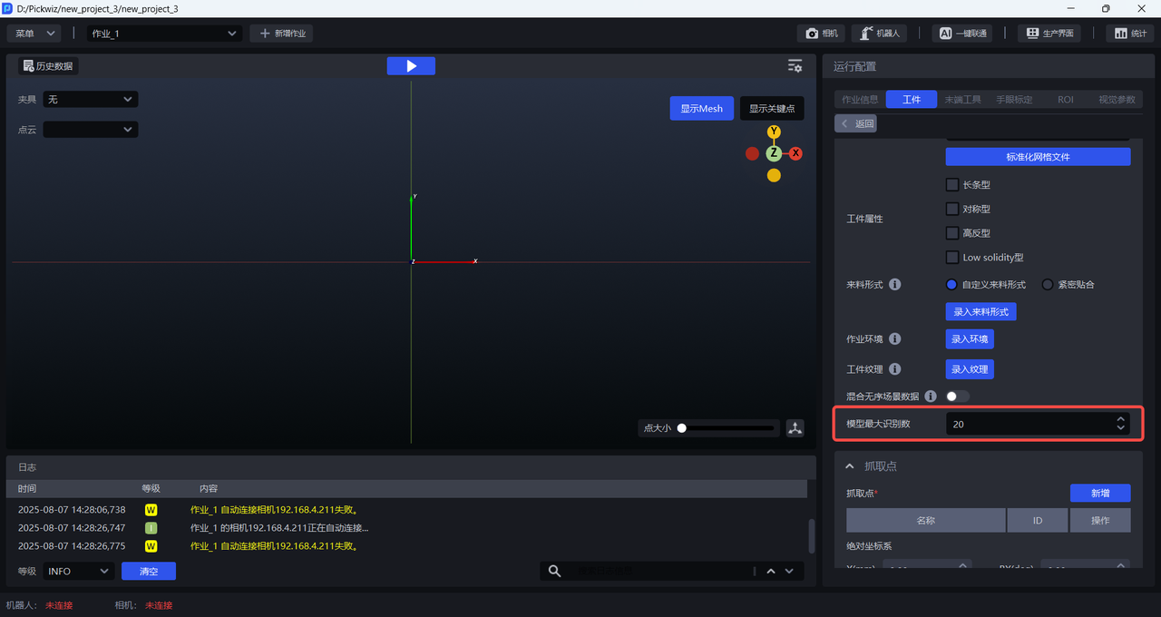 配置好ROI 3D和ROI 2D后,在作业信息中选择对应的ROI 。