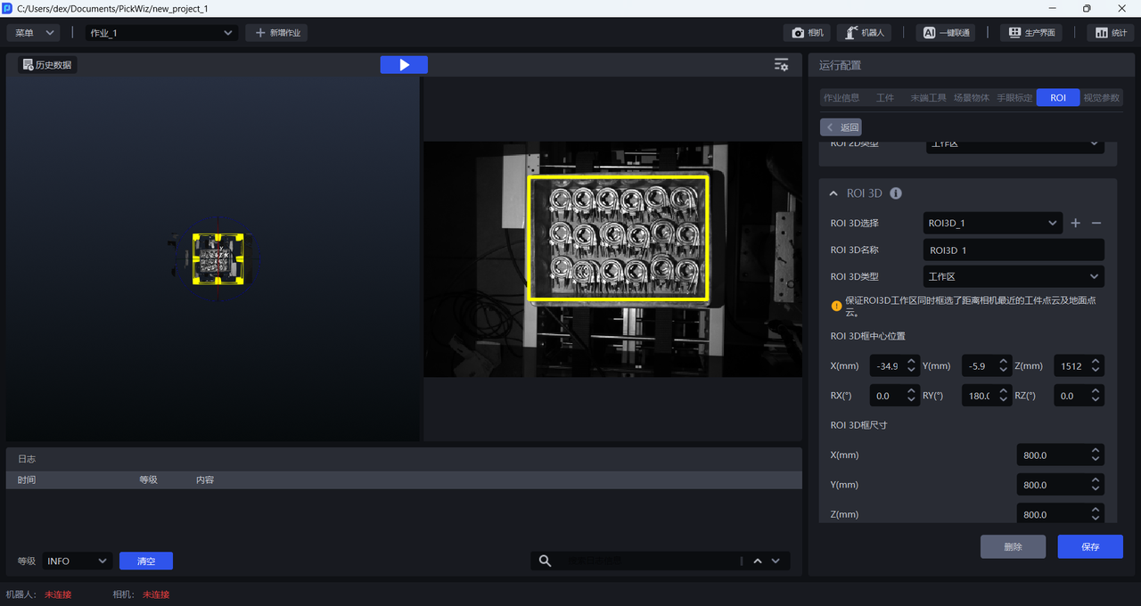 在新增ROI 3D过程中,系统会默认添加一个工作区,且每个 ROI 3D 必须设置一个工作区。