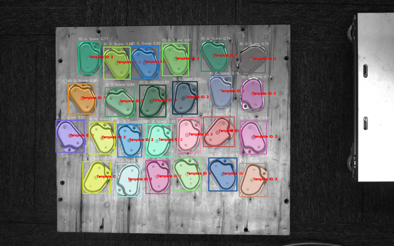 | 面型工件有序上下料(图像匹配) | 面型工件、有序摆放、工件一致性高,能获取工件 CAD | 基于示例的实例分割 | 特征匹配 | ||