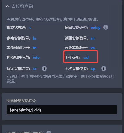 测试录入后,打开机器人配置,在视觉检测发送指令中,添加 工件类型指令符‘{cid}’