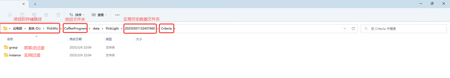 正常历史数据的存储路径是:项目所在文件夹/项目文件夹/data/PickLight