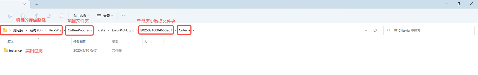 异常历史数据的存储路径是:项目所在文件夹/项目文件夹/data/ErrorPickLight