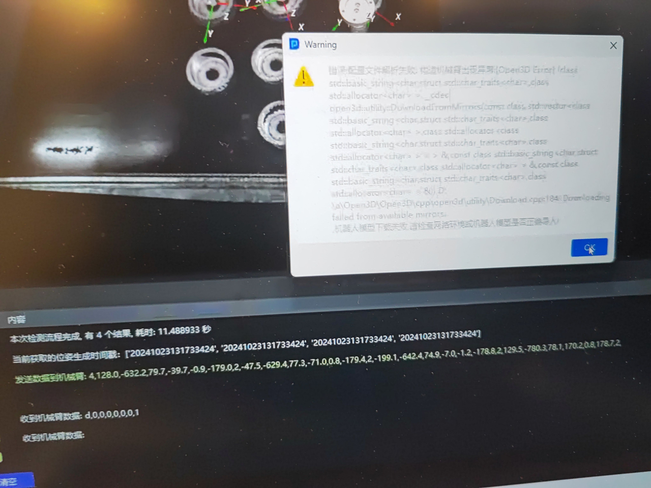 本次检测流程总耗时:从收到相机数据开始到计算得到抓取点的总用时,其中包括:作业配置解析、资源注册、节点生成以及上述的检测管线总耗时,这个时间表示后端部分一次计算的真正用时,第一次运行时注册时间会比较久,之后的每次计算,如果配置不变的情况下,会有额外的内存回收时间,目前大概在0.1-0.2s,因此看起来会比检测管线总耗时总是稍多一点。