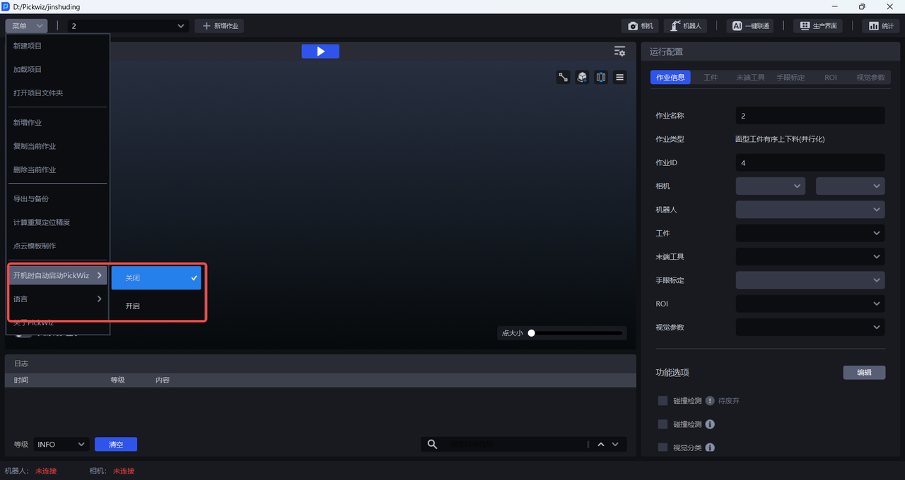 若需设置 PickWiz 开机自启,可在主界面点击菜单>开机时自动启动PickWiz>开启