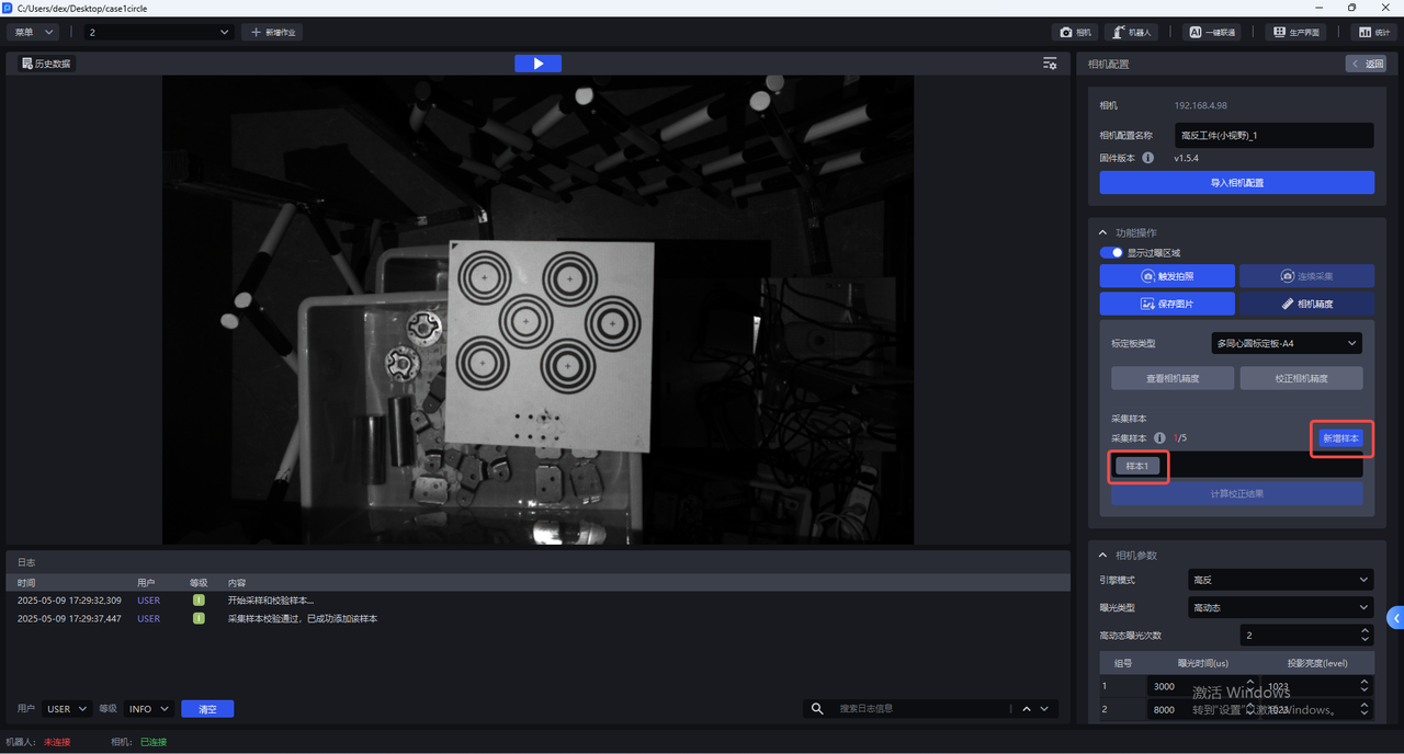 新增样本,相机开始采样和校验样本,若采集的样本校验通过,会添加到采集样本下方,如下图所示
