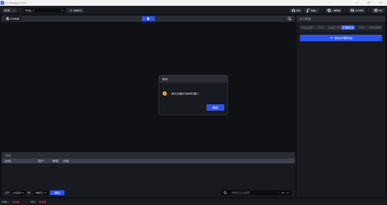 请首先完成机器人、相机和工控机的安装与连接