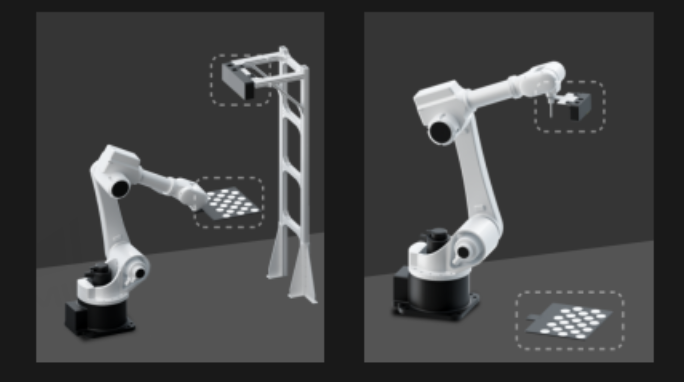 相机安装方式:相机在视觉引导套件中的安装方式,分为眼在手上和眼在手外。