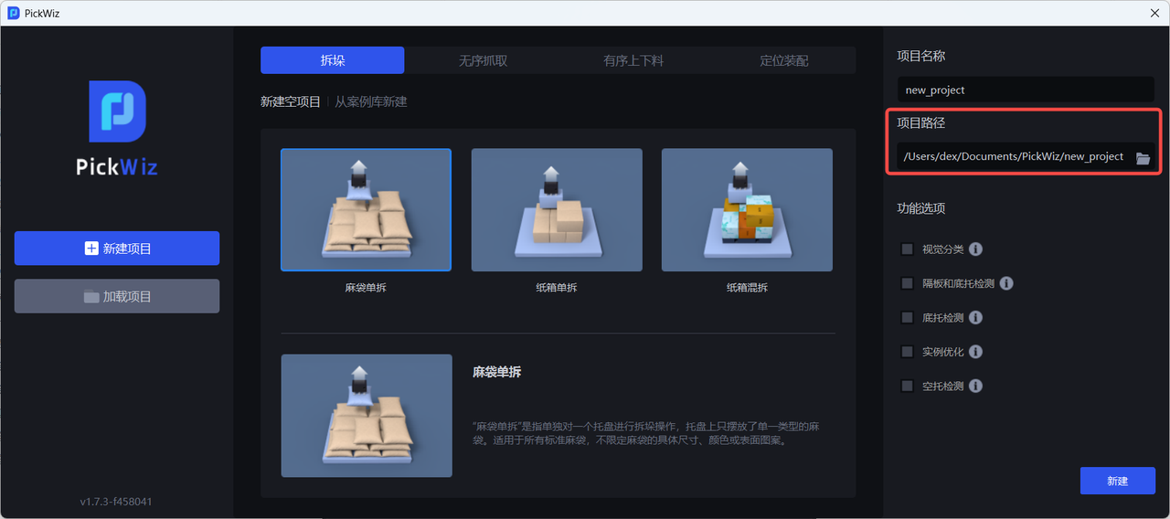 暂不支持麻袋单拆、面型的有序和无序上下料、面型工件上下料(物料相互孤立)、面型有序上下料(图像匹配)以及定位装配场景