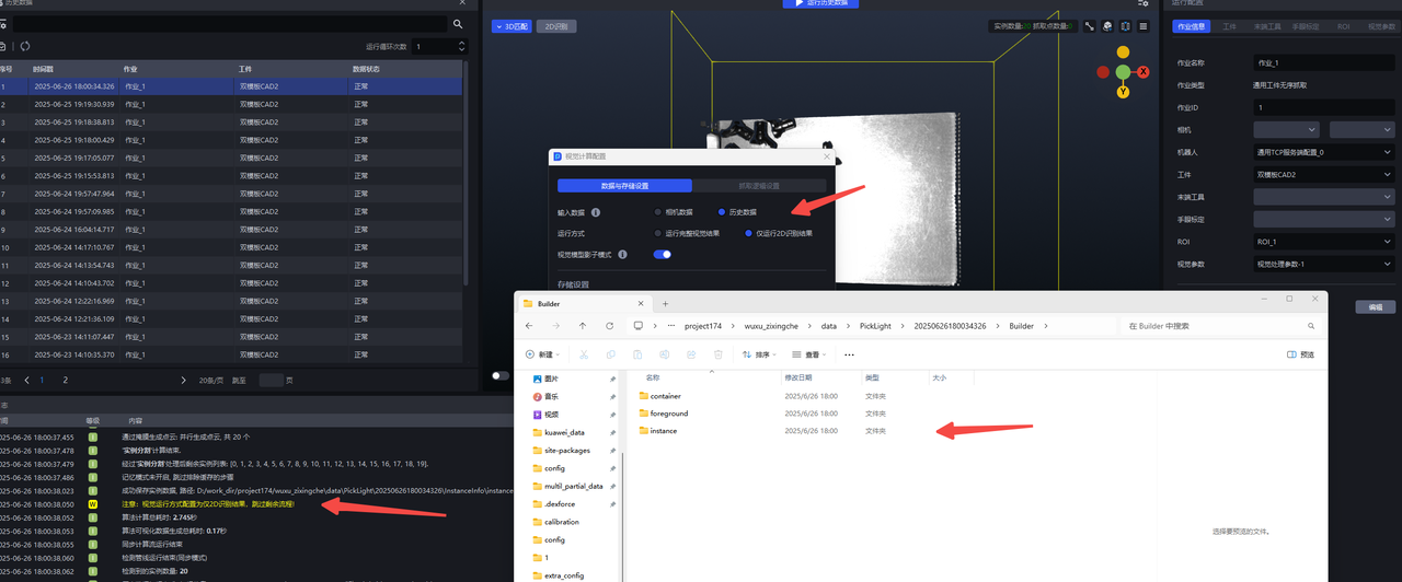 历史数据是 Pickwiz 过去一段时间内的运行记录,保存了视觉计算各个过程的输入数据和输出结果,用于排查故障原因,如下图所示,具体说明请查阅 历史数据使用指南。