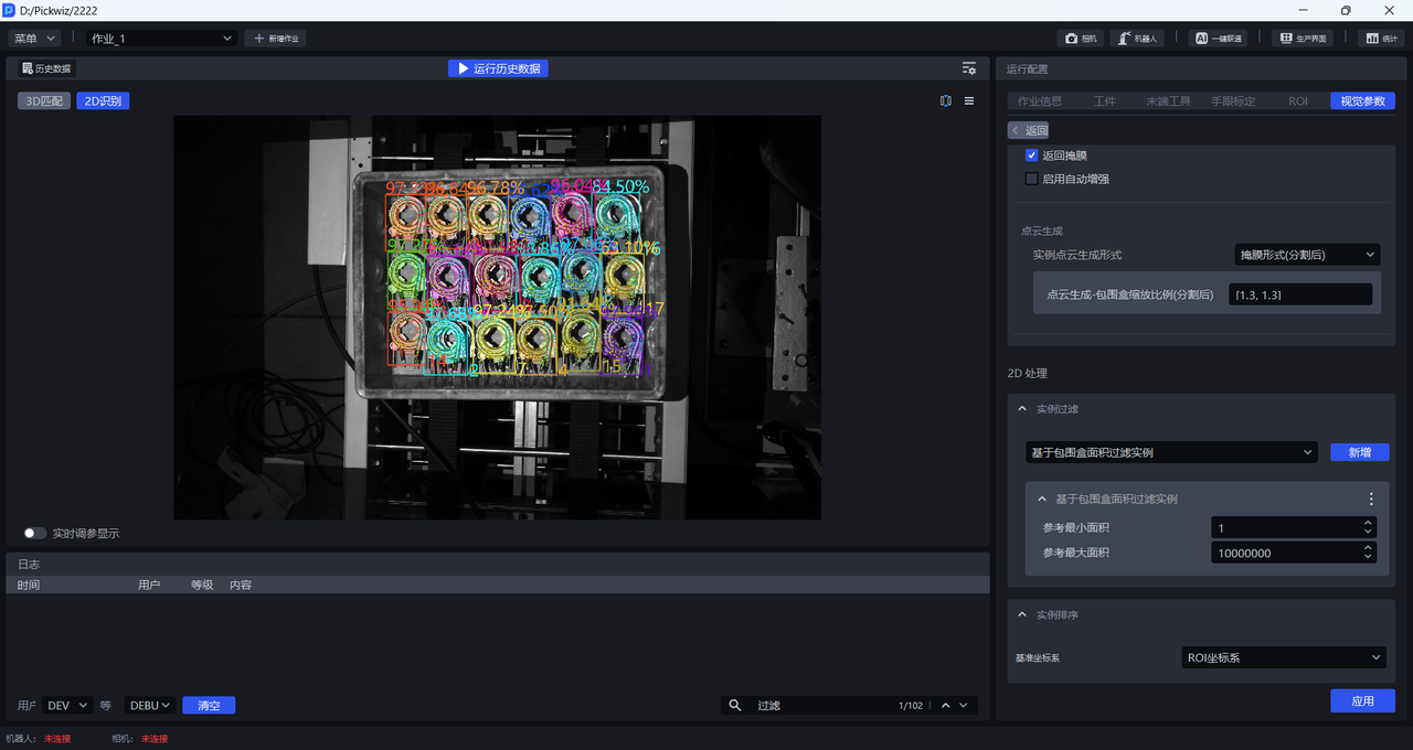 本文主要介绍如何在四边形工件的有序上下料、无序抓取中根据实际场景调整视觉参数
