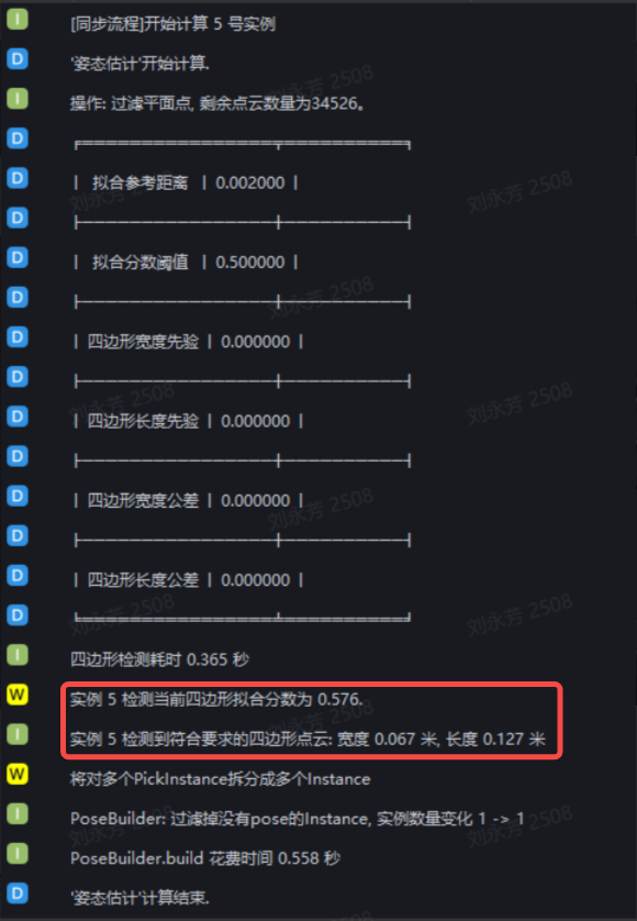 (1)在3D匹配视窗,将鼠标悬浮在实例上,可以查看到纸箱组合后单个实例的组合抓取信息,包含2D识别结果,抓取位姿和实例组合信息。