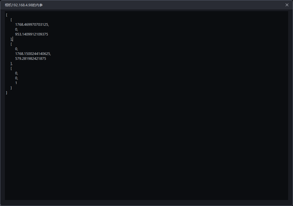 查看内参,可查看相机内参,包括镜头焦距、主点坐标、畸变系数等。