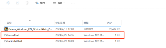 2)在发行版中解压GalaxySDK压缩包,双击运行install.bat。此时会静默安装大恒相关库,等待2分钟安装完成。