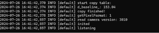 若看到光机投光且服务端出现listening则表示服务端已经运行。客户端可正常连接相机。