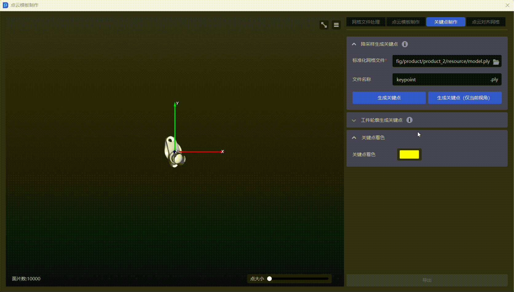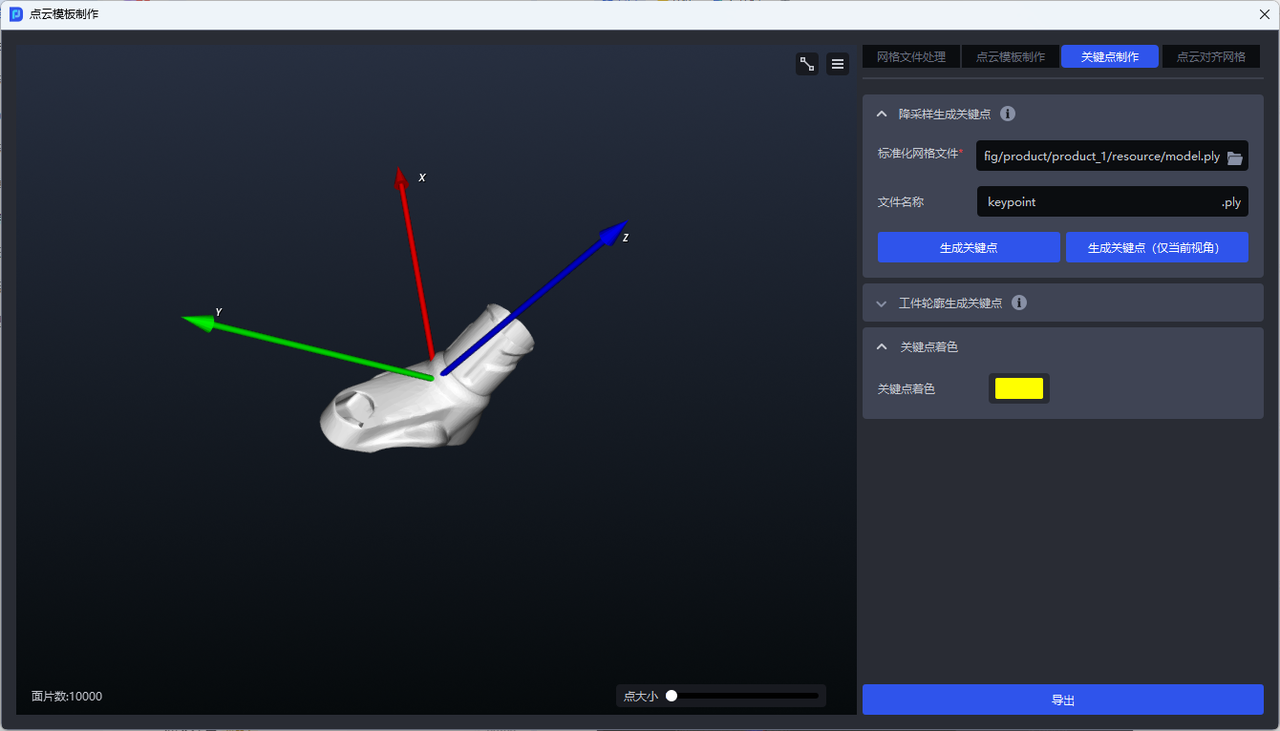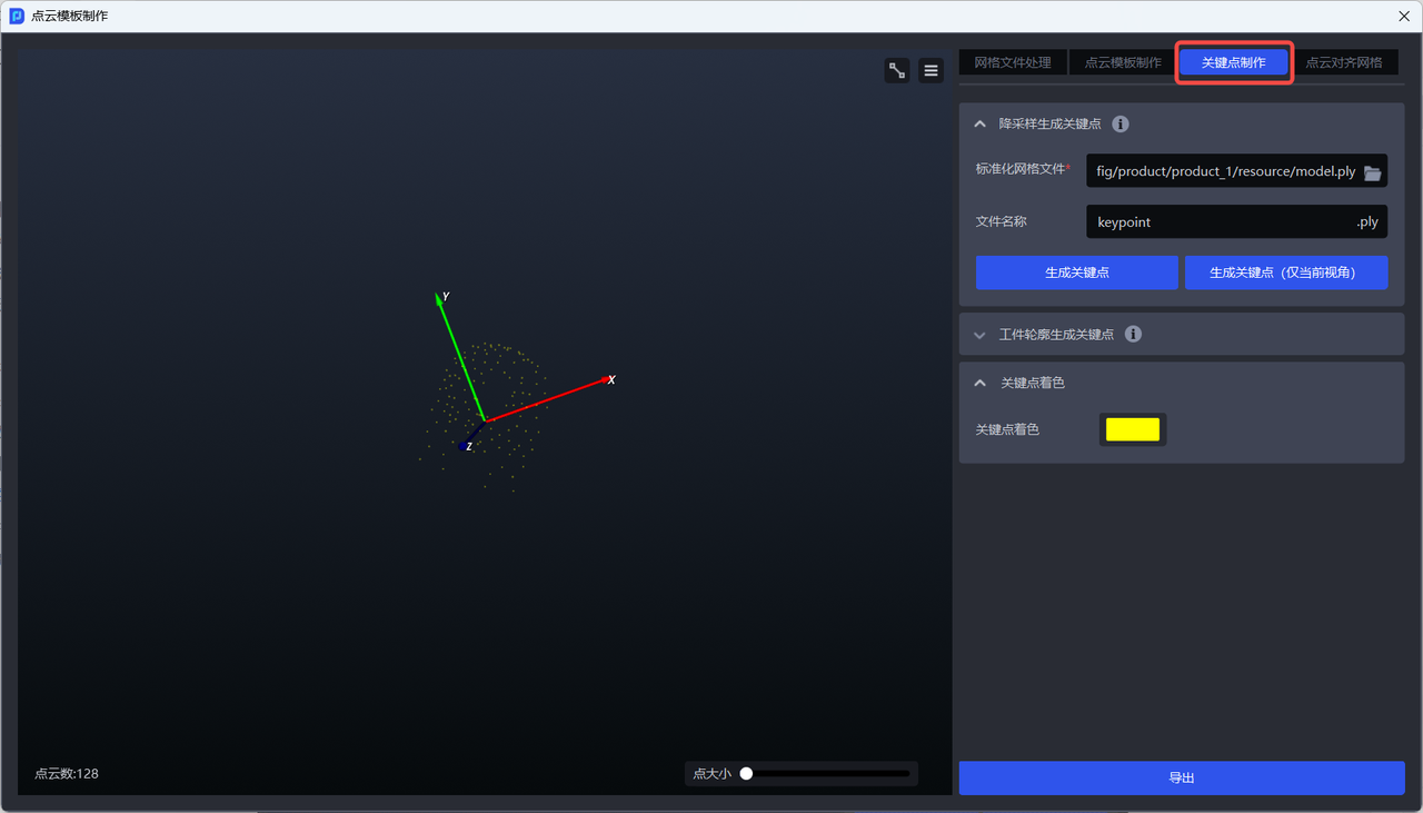 - 若需生成工件的全量关键点,可点击