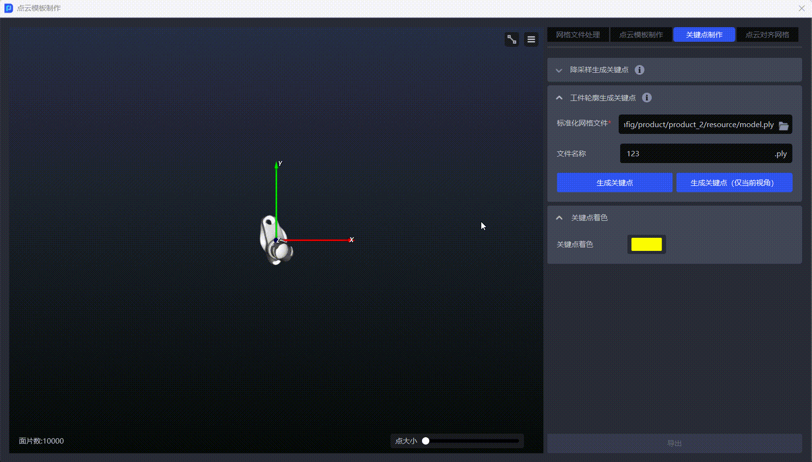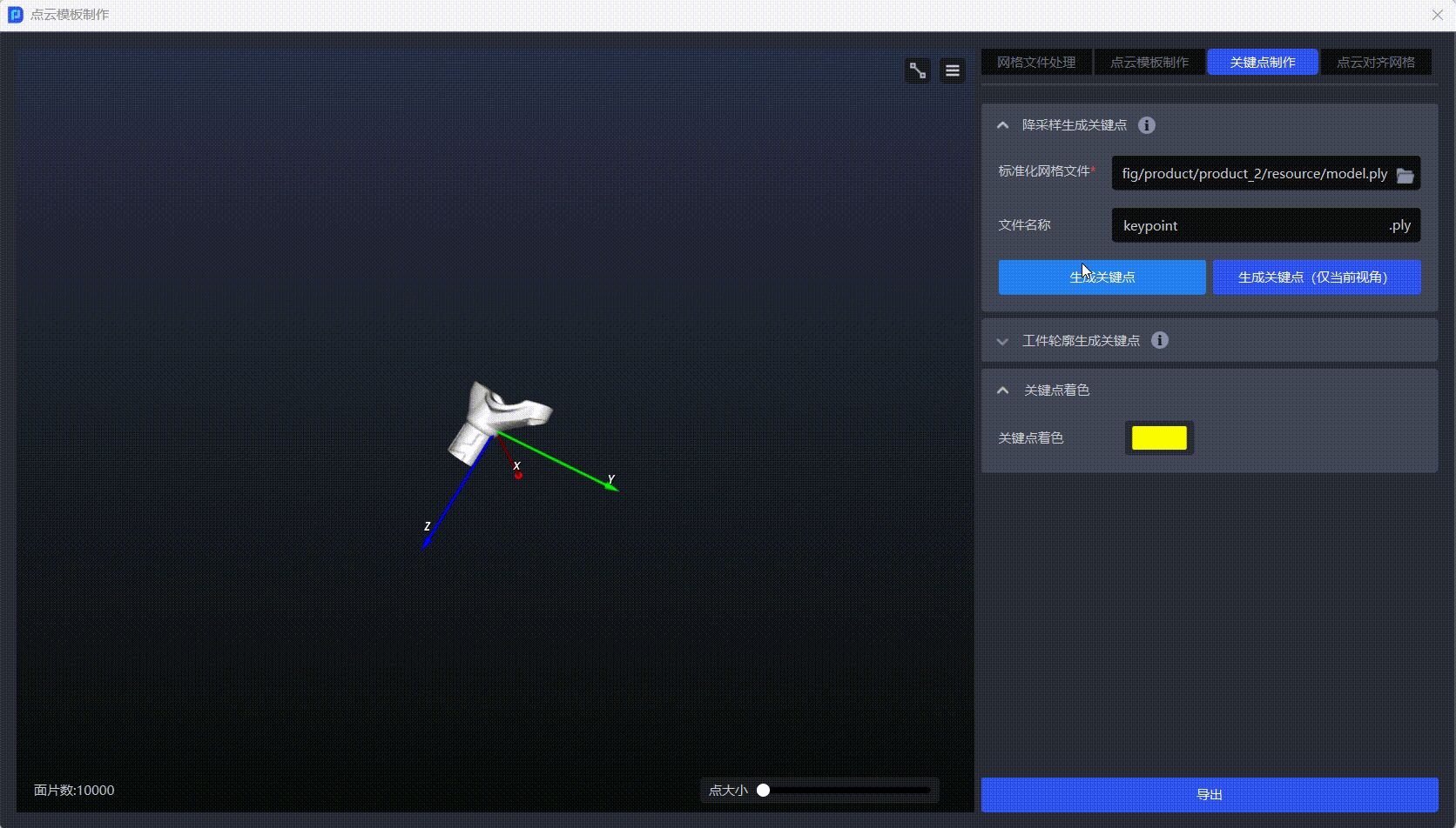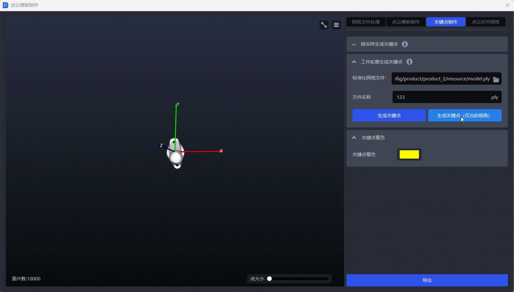 - 若需生成工件的全量关键点,可点击