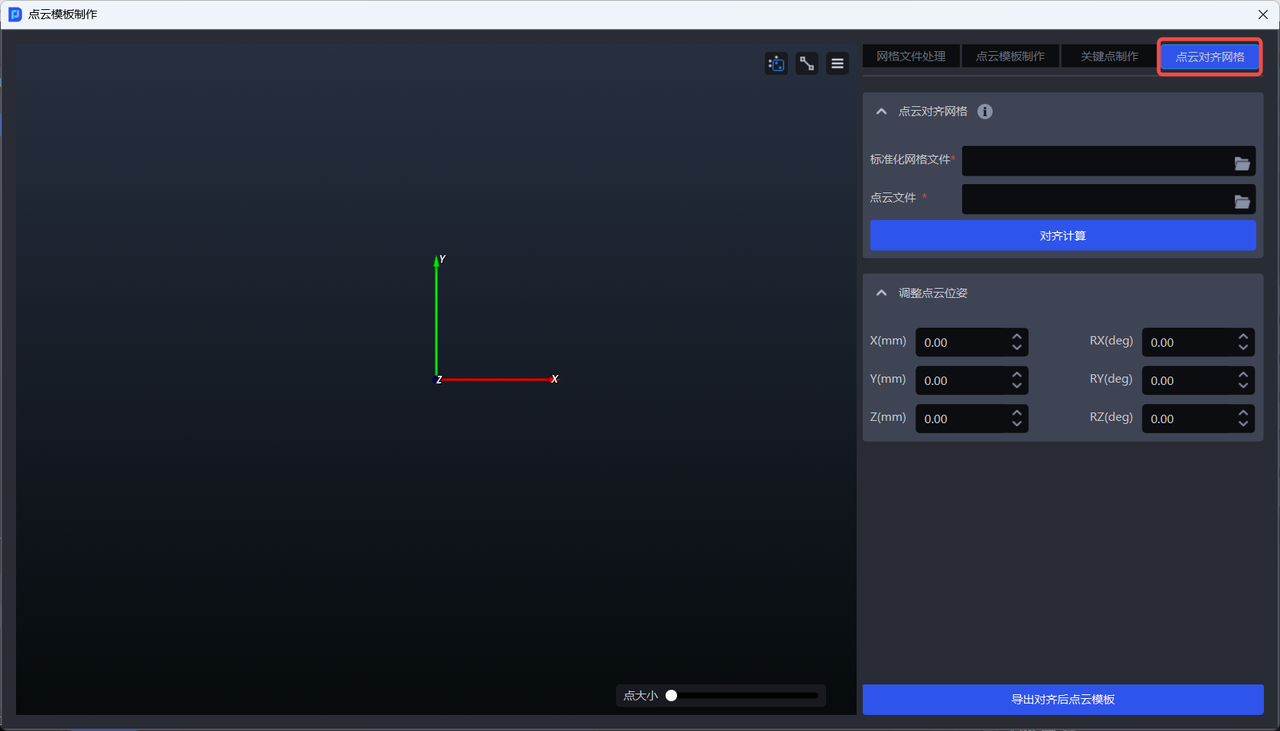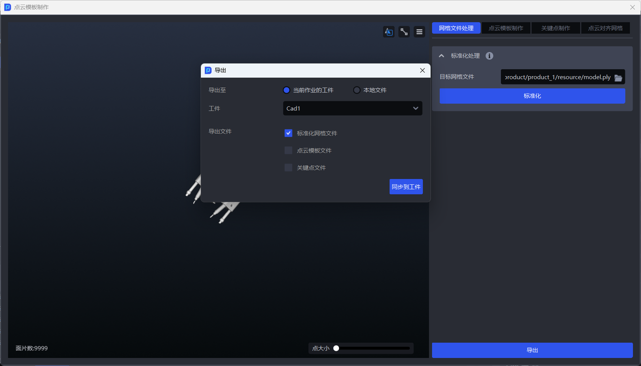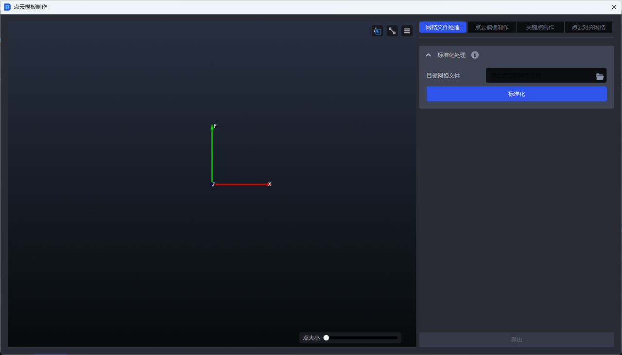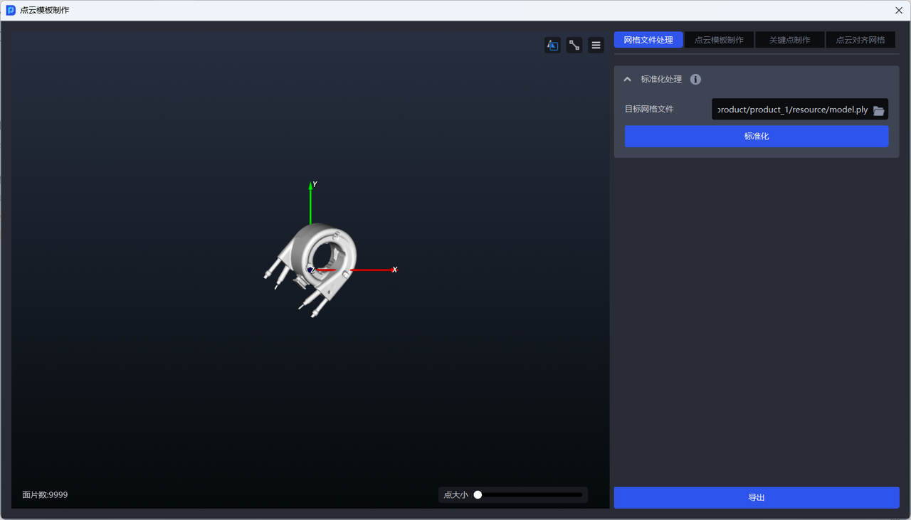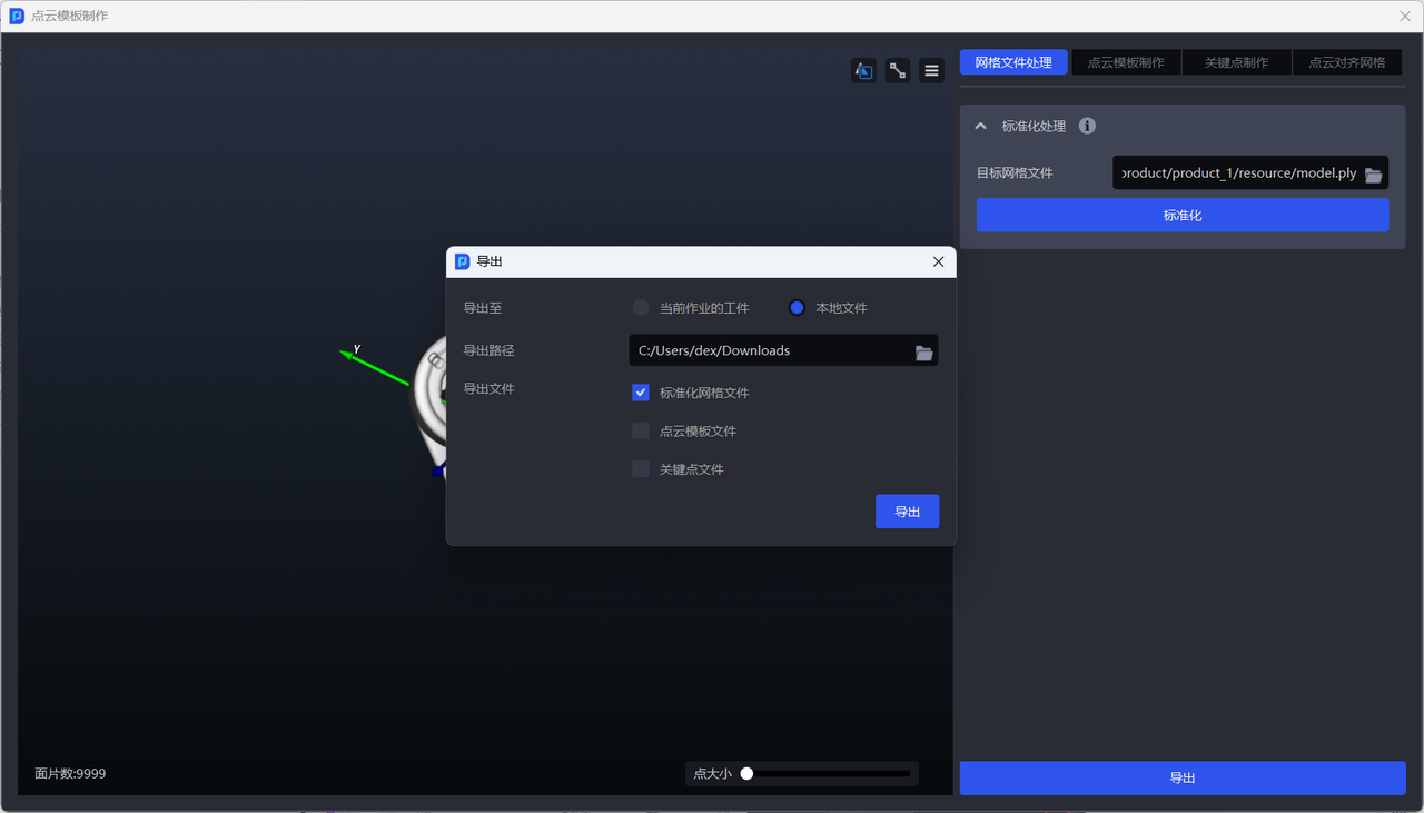- 如需制作点云模板或将点云模板对齐网格,应导出标准化后的网格文件至本地。