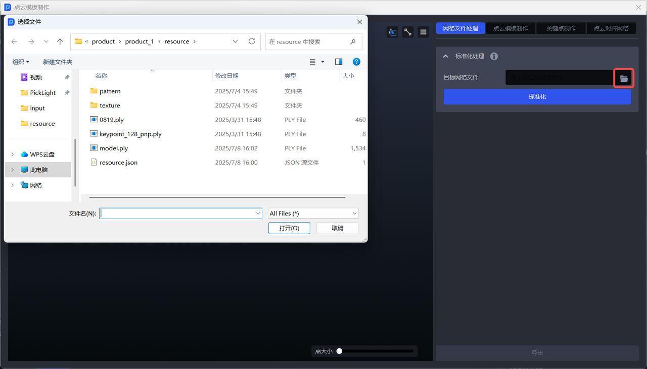 PickWiz 的点云模板制作功能包括网格文件处理、点云模板制作、关键点制作、点云对齐网格四部分,操作方法如下。