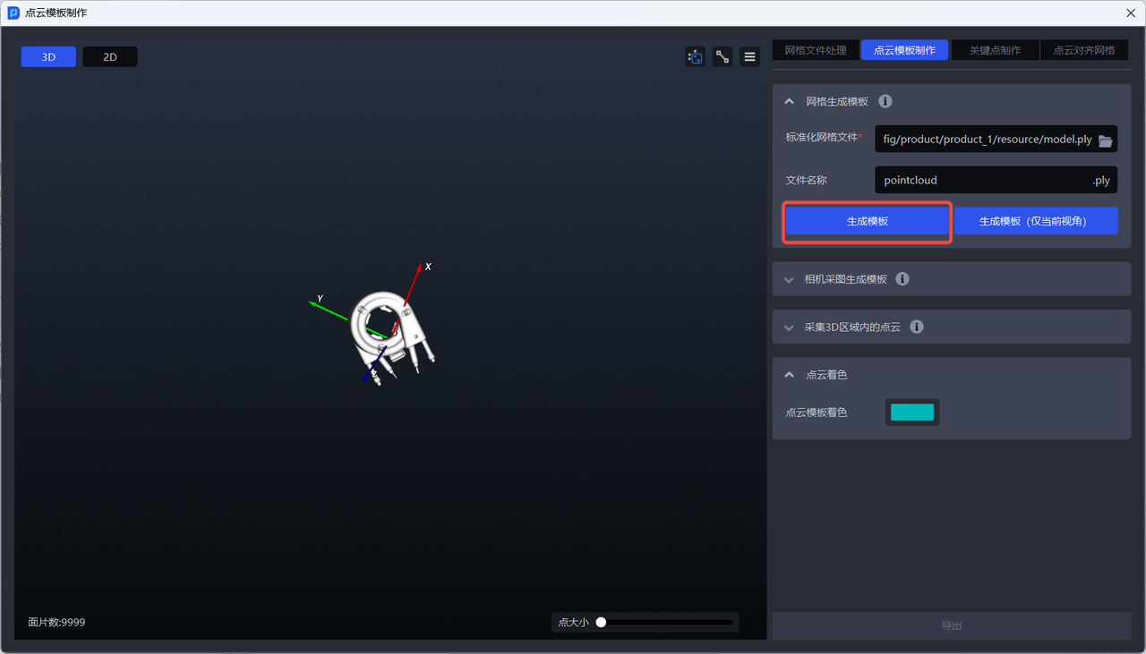 通过网格文件生成点云模板:该网格文件必须经过标准化处理,才能正常生成点云模板。