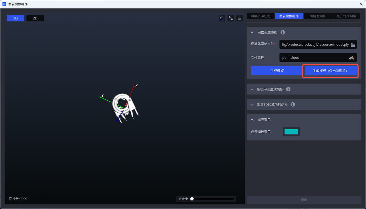 - 若仅需生成当前视角的工件点云,可点击