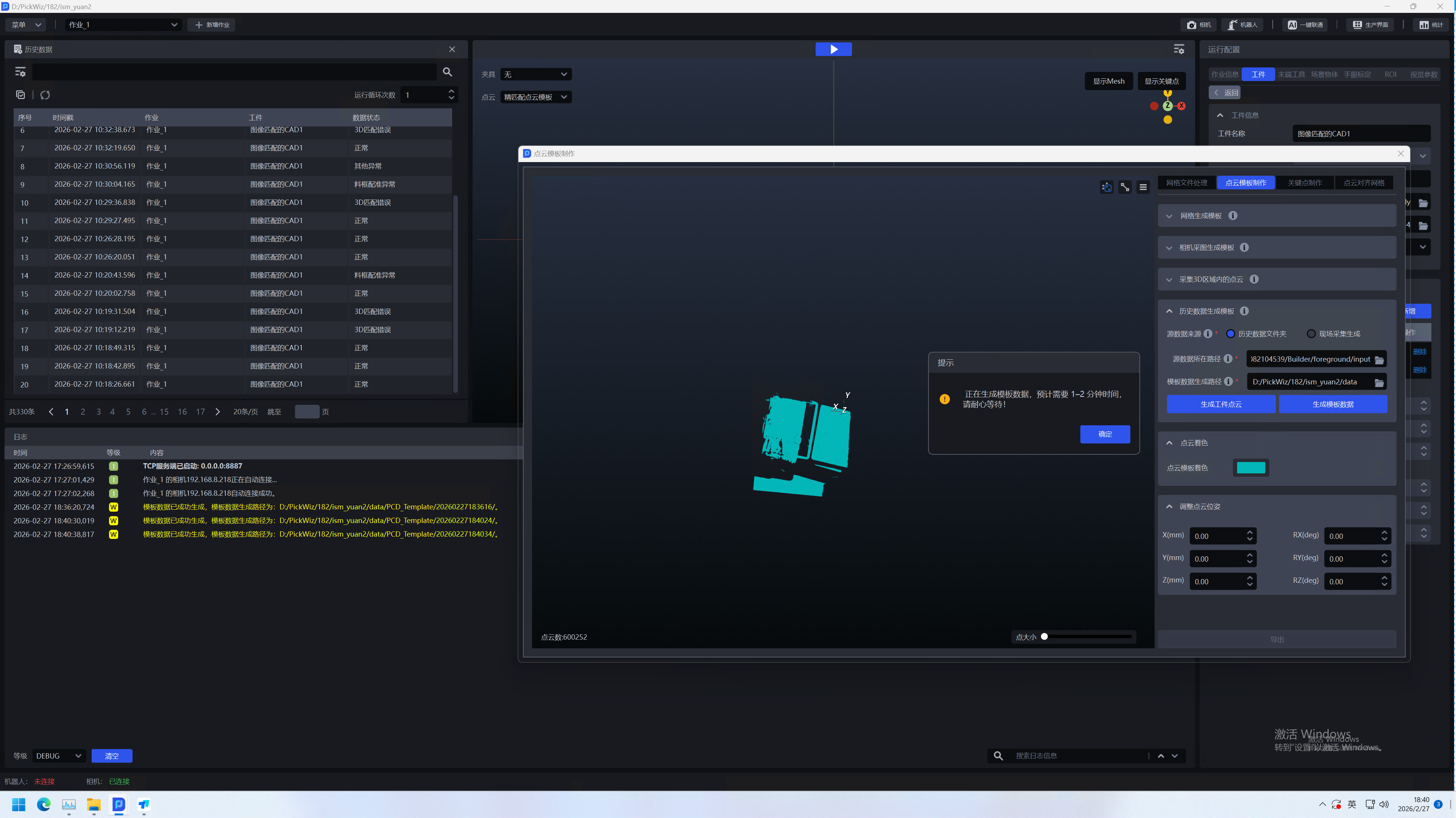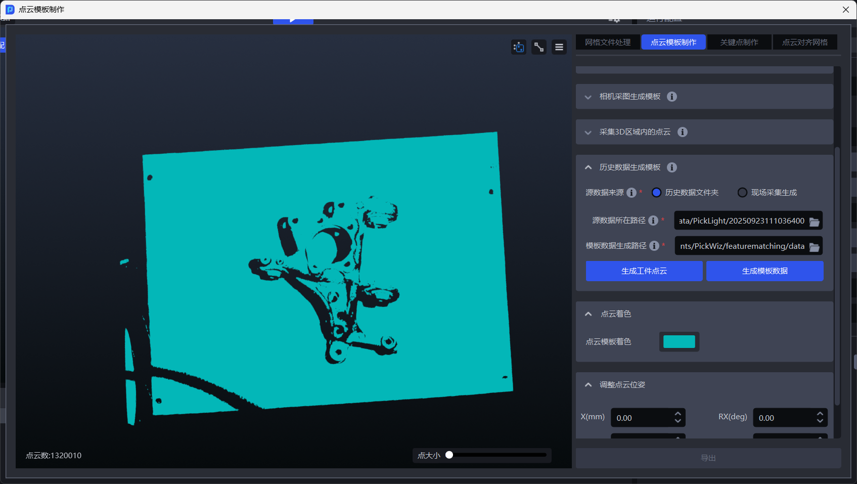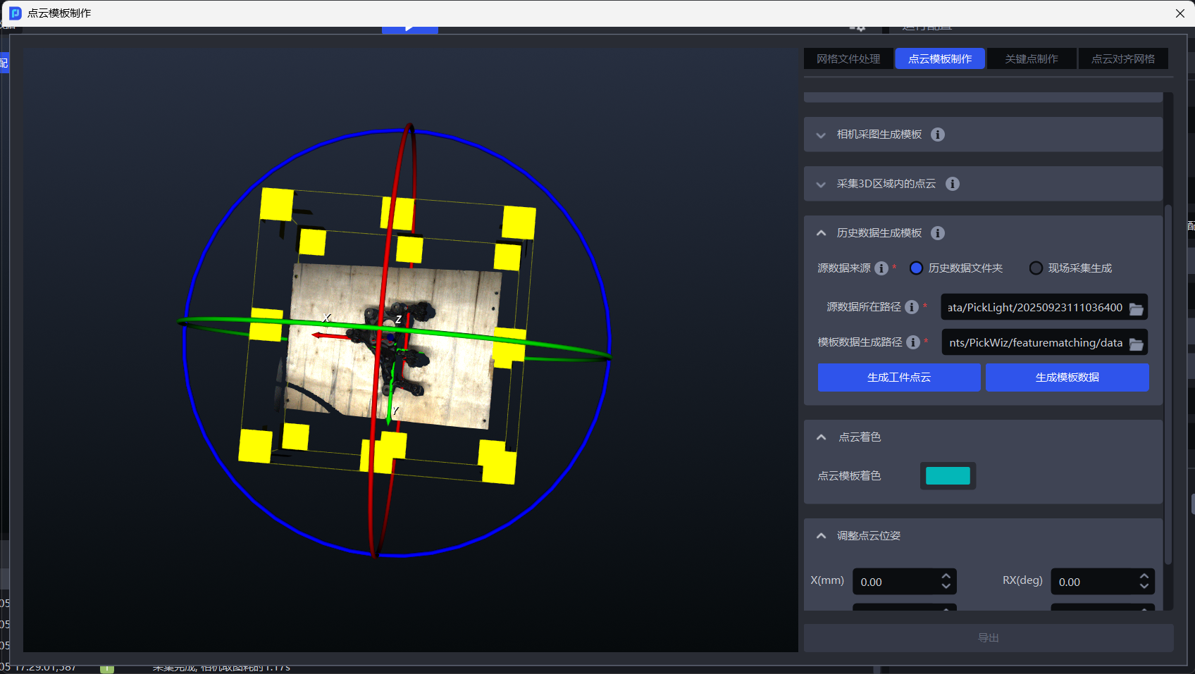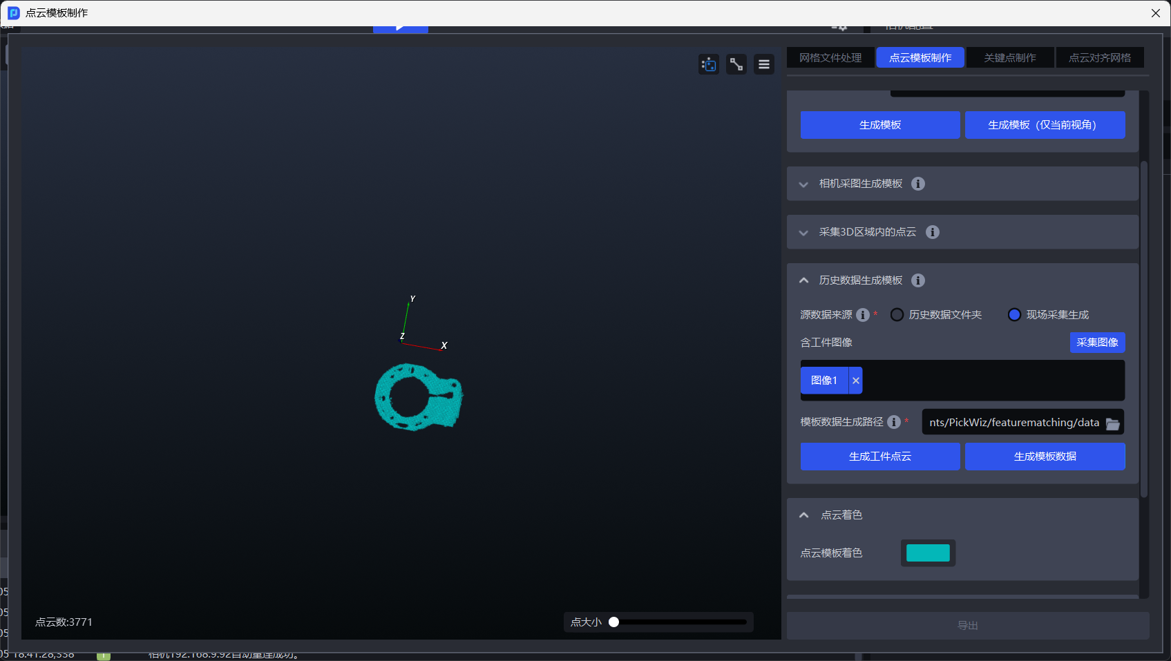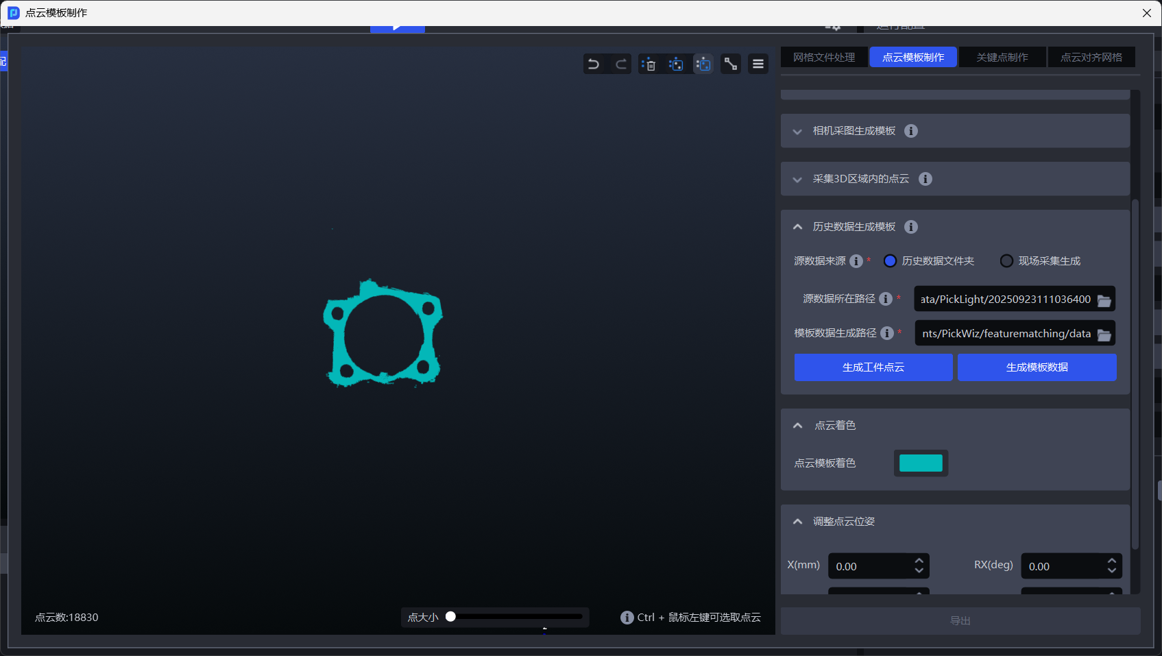 工件点云制作完成后,点击生成模板数据,即可完成模板生成。