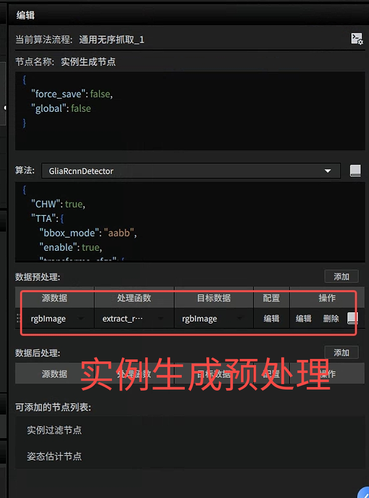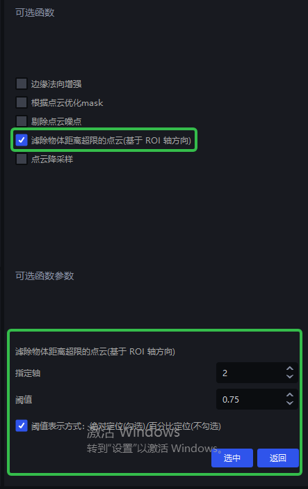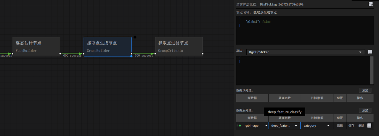 - 对单独实例做正反分类,首先在抓取点生成 后处理 添加processor:deep_feature_classify,参数如下