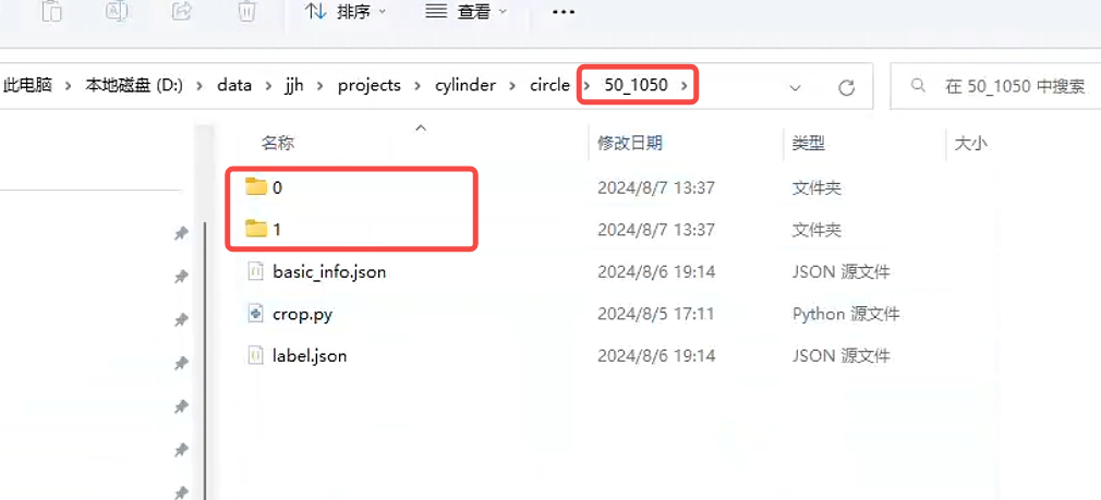 - 创建一个文件夹用于存放正反数据,在创建的文件夹下创建"0"和"1"两个命名的文件夹,如下图