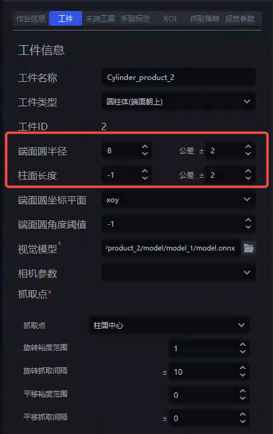 解决方案:在圆柱工件属性中设置半径先验和长度先验,如下图(单位是mm)