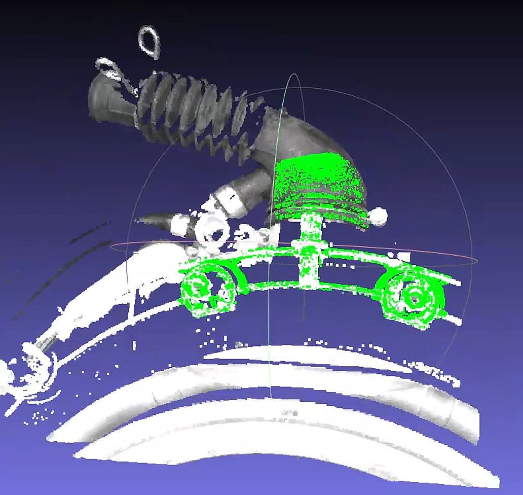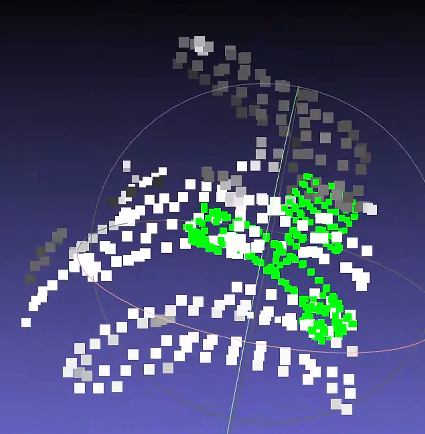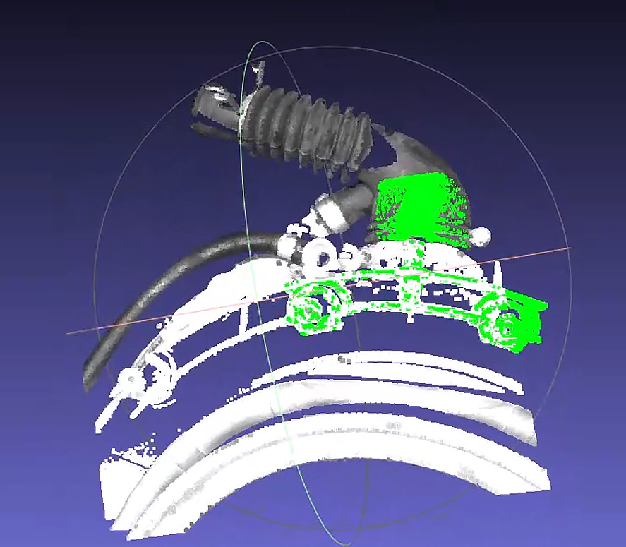 现场反馈姿态估计匹配结果如下,绿色为模版匹配结果,白色为场景点云