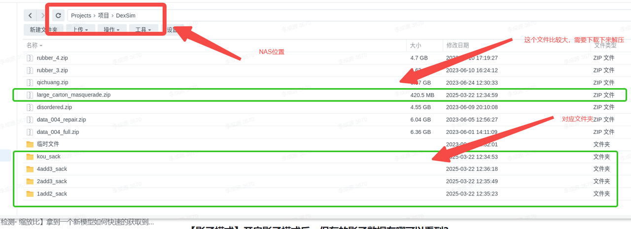 - 在NAS上下图的位置找到对应的文件夹(注意有个文件夹要解压缩),解压后替换上图中data projects的同名文件夹即可。(先删除data projects中文件夹,再更新进去)