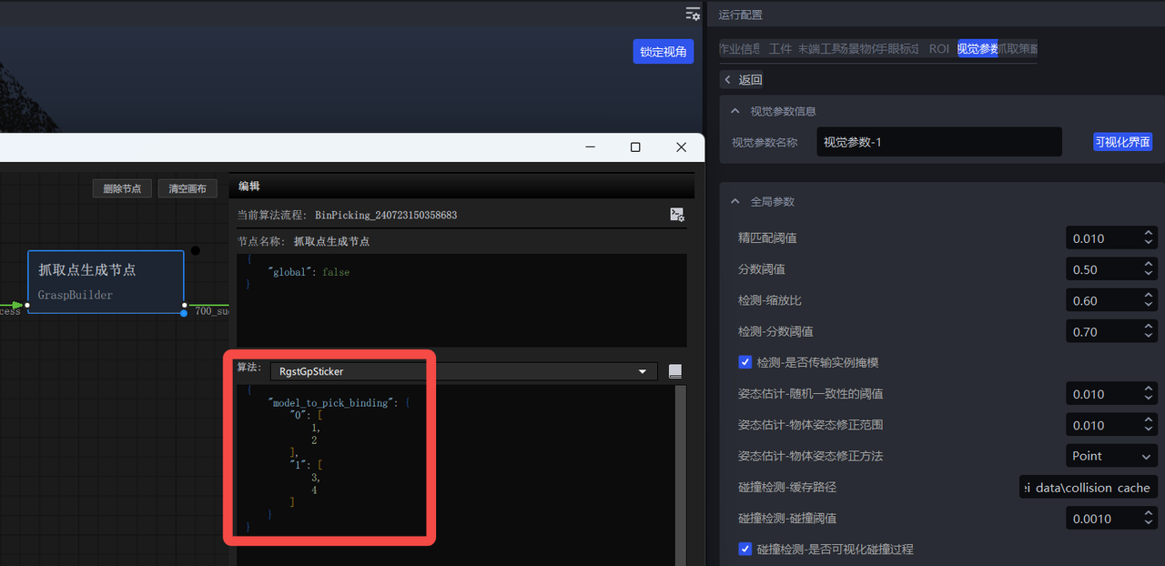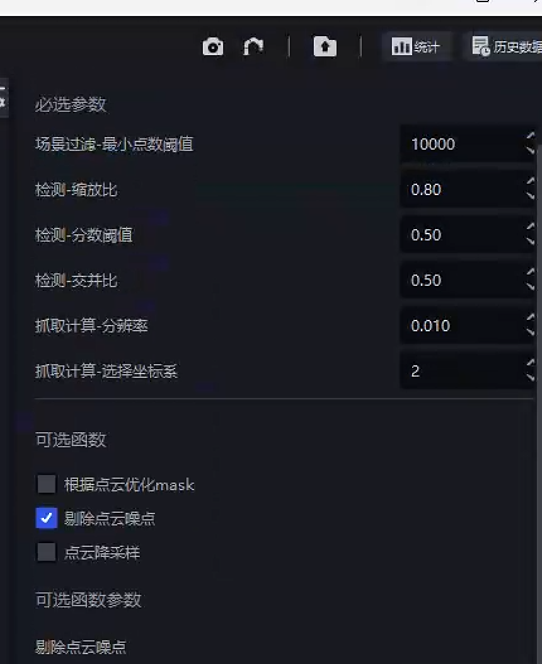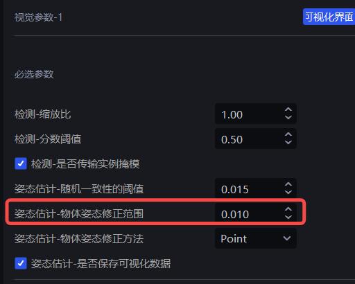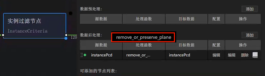 对点云模版进行平面去除的调整,同时在实例过滤节点后处理处增加remove_or_preserve_plane,降低平面部分缺失对匹配的异常影响,参数设置如图,实际新建时会多一个“return_params”参数,删除即可。
