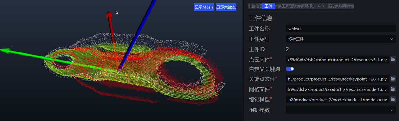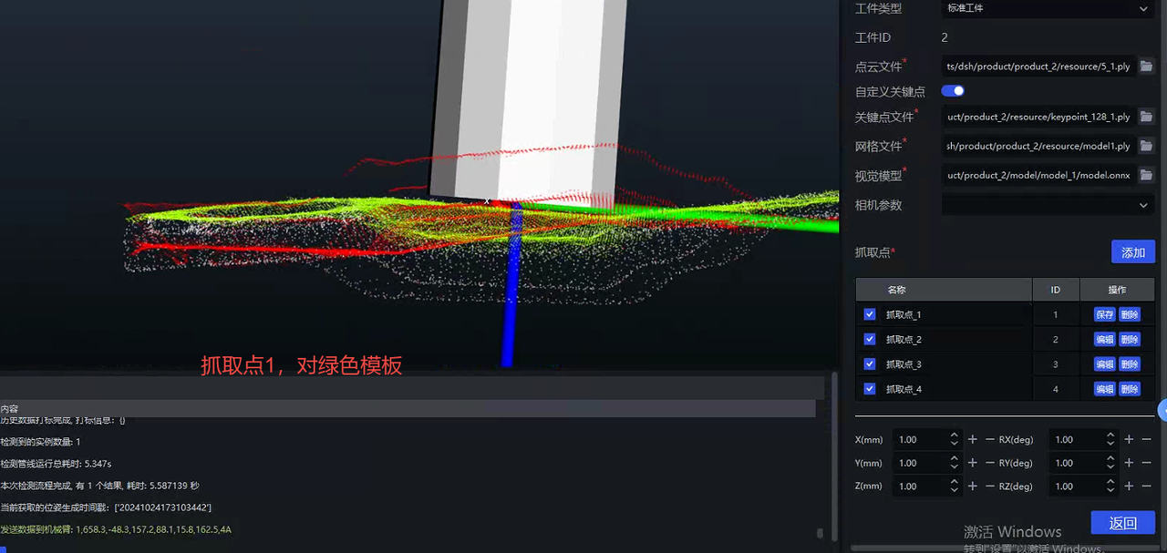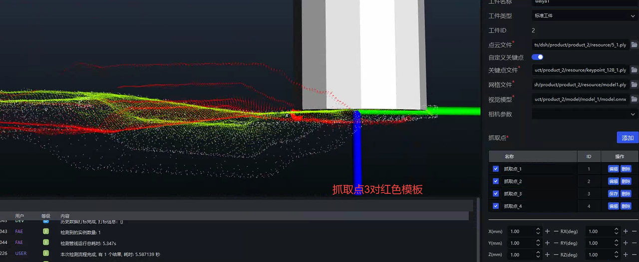 - 采用面型工件+cpfv算法,模型点云文件通过相机拍照抠取获得