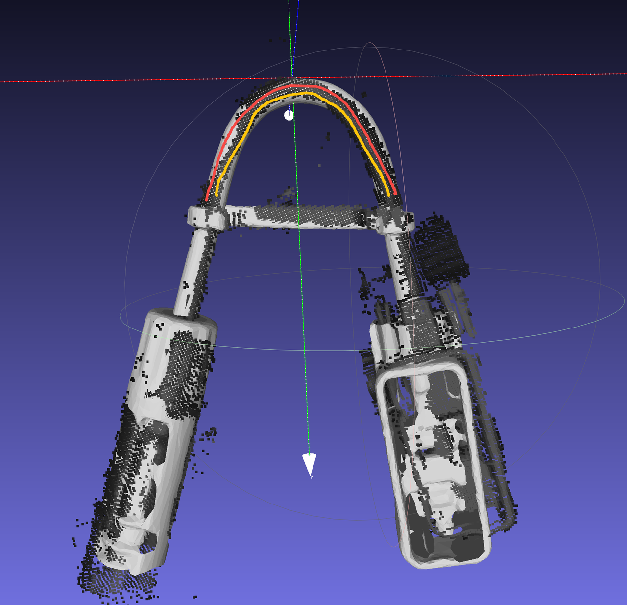 O型线束一般存在尺寸上差异。可以同时scale Cad和特征点,参见 Meshlab常用操作,形成和实际线束尺寸对等的模型,注册到软件中。