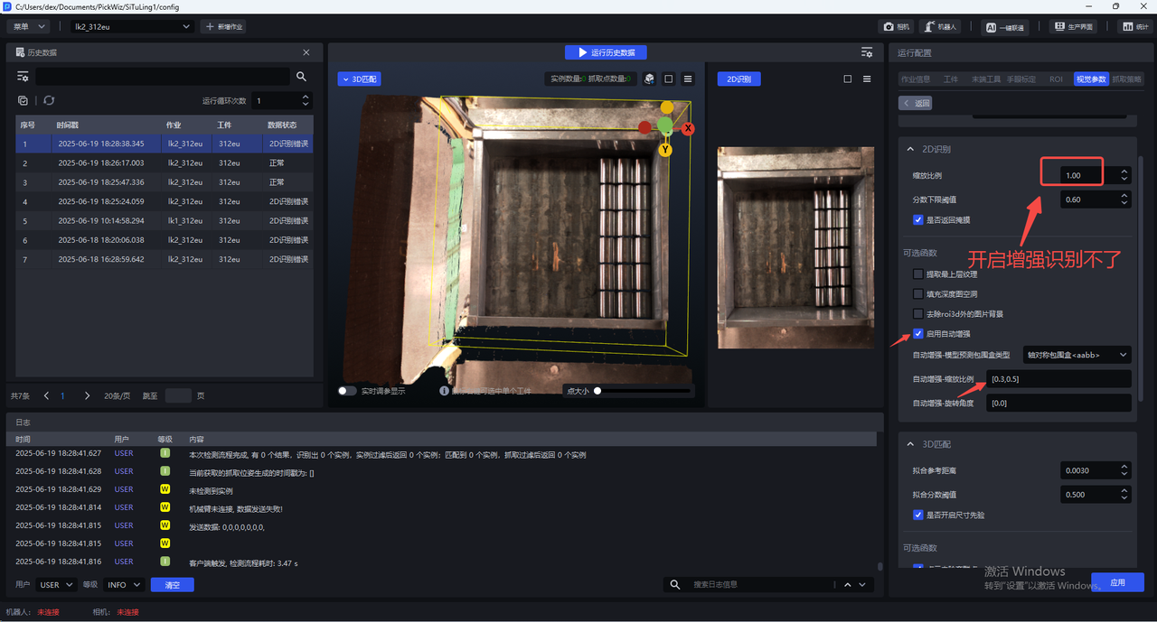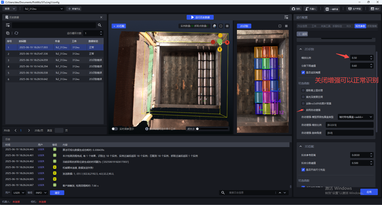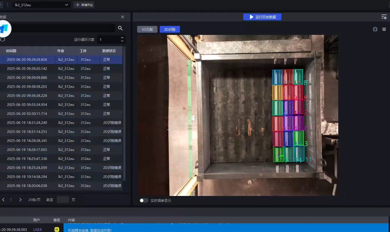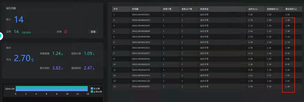 修正后测试13份历史数据匹配正常,在现场使用相机拍摄10次,重复精度满足要求,算法耗时在1s左右