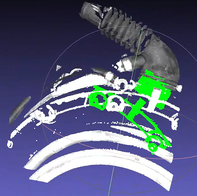 发现图中最上方的管子主体在场景点云中存在大量缺失
