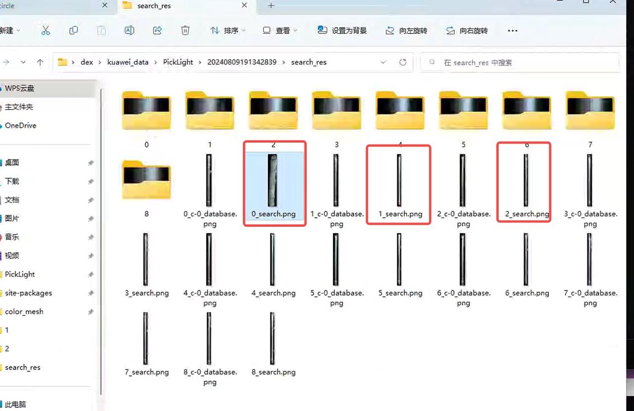 - 把x_search.png复制下来,到指定路径下建一个当前你想添加的料的尺寸命名的文件夹,最直接是复制已有的文件夹,然后把里面东西清空,里面是0和1两个文件夹,清空后放分类好朝向的图片进去(Tip:此步骤需要操作员自己分辨好正反)