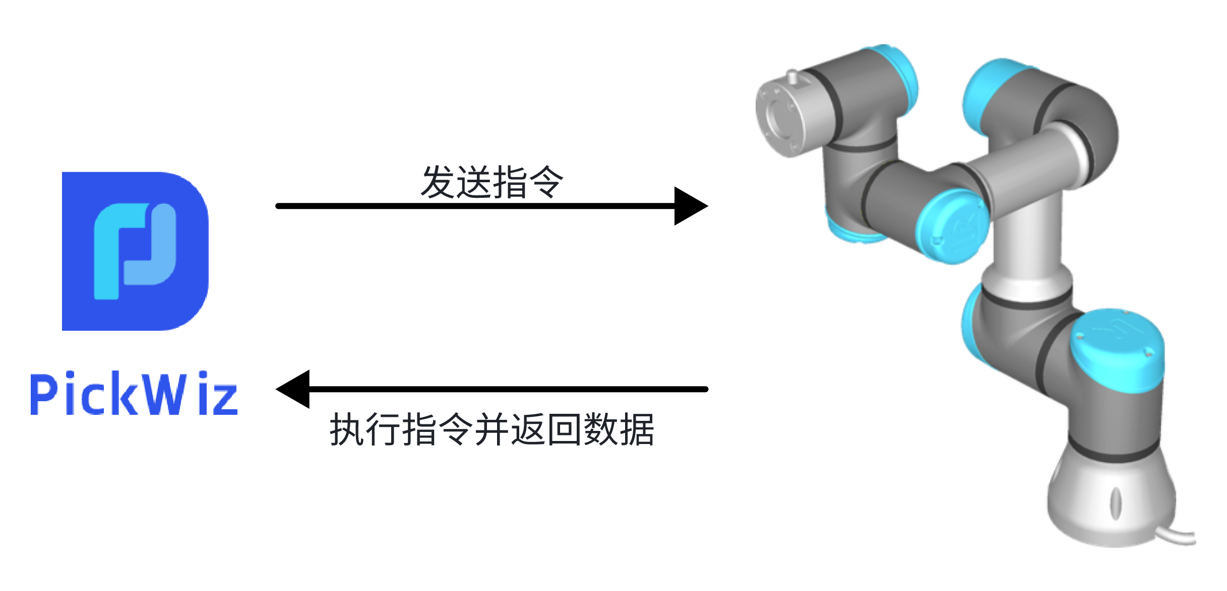 ModBus 是 PickWiz 作为客户端、机器人作为服务端的通信方式,PickWiz 与机器人进行通信时主动控制机器人,向机器人发送指令,机器人接收到指令后执行指令并返回数据。