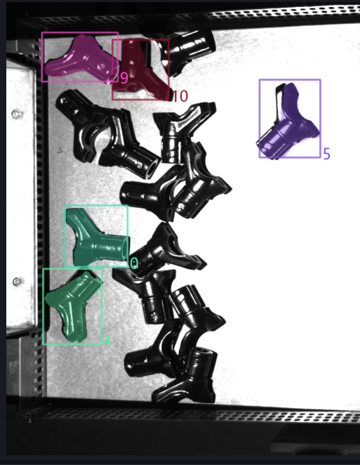适用于面型工件上下料(物料相互孤立),光照条件不佳、颜色纹理相近、紧密堆叠、交错堆叠或遮挡等因素可能导致模型难以区分工件上层和下层的纹理差异,因此容易误检测