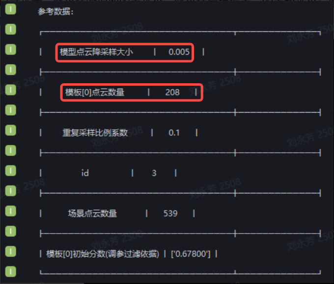 | 降采样的点间距(m) | 按照指定的点间距来采样点云 | 0.005 | [0.0001, 1] | m |