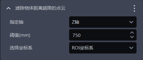 | 选择坐标系 | 在选择的坐标系下滤除点云 | ROI坐标系 | 相机坐标系;ROI坐标系;物体自身坐标系 | / | / |